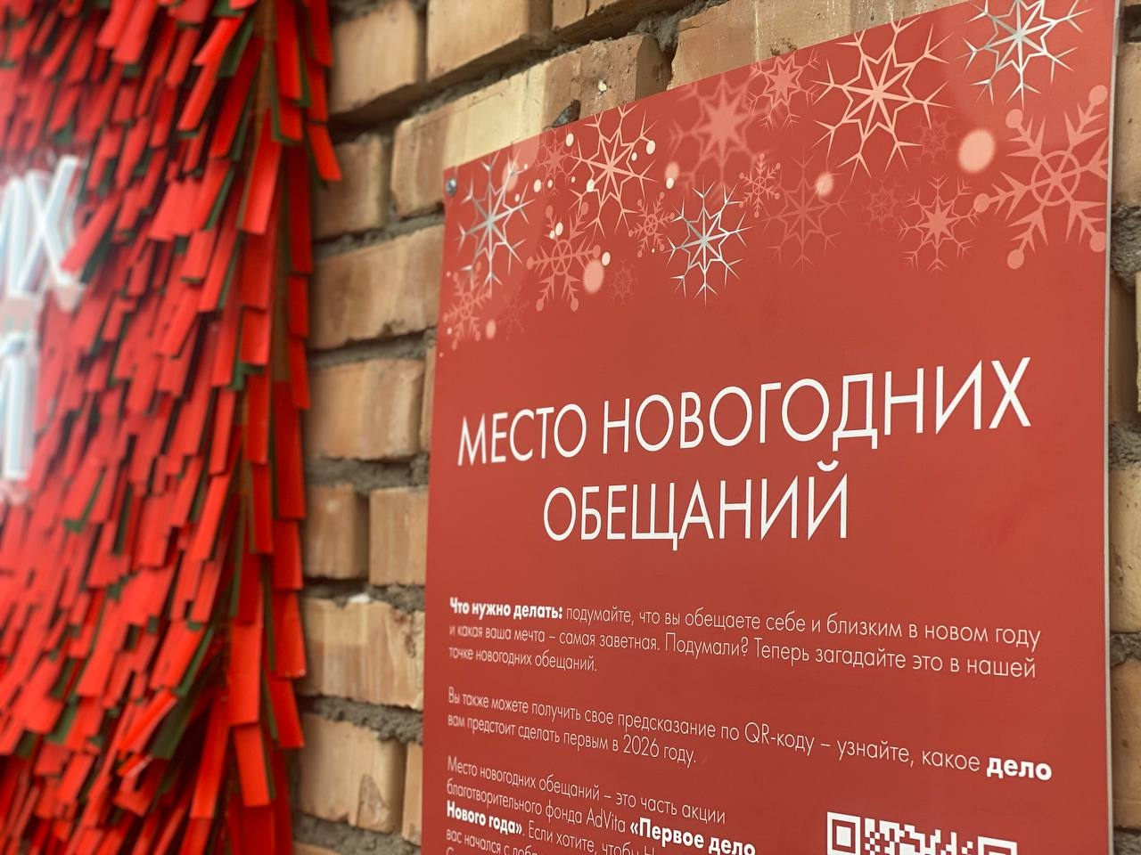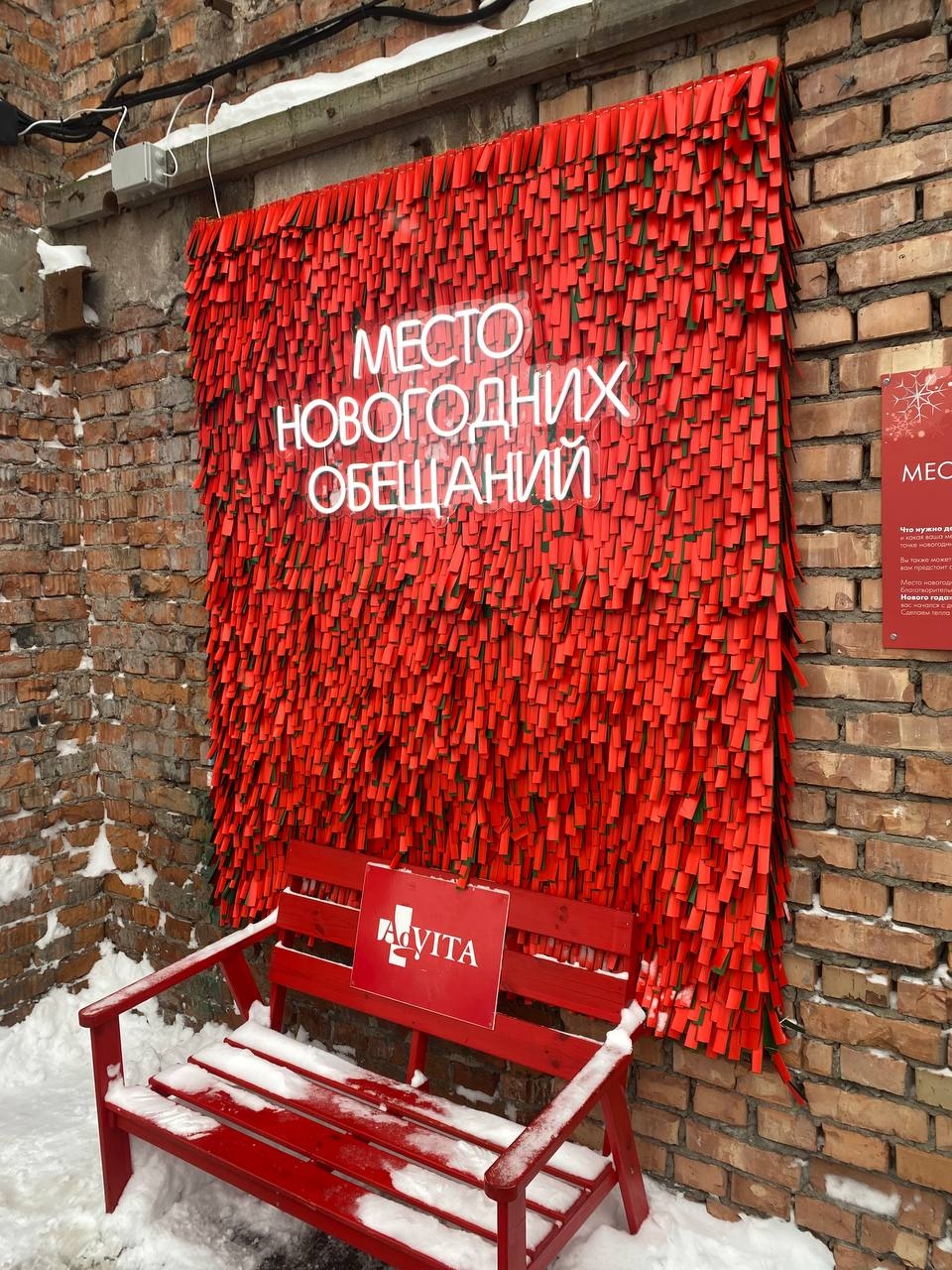 Мы вместе с нашими друзьями из культурного квартала Брусницын сделали точку для новогодних обещаний. В красно-зеленой мишуре на адвитовской красной лавочке можно найти ответ на то, что хотелось бы обязательно сделать в 2026 году.
