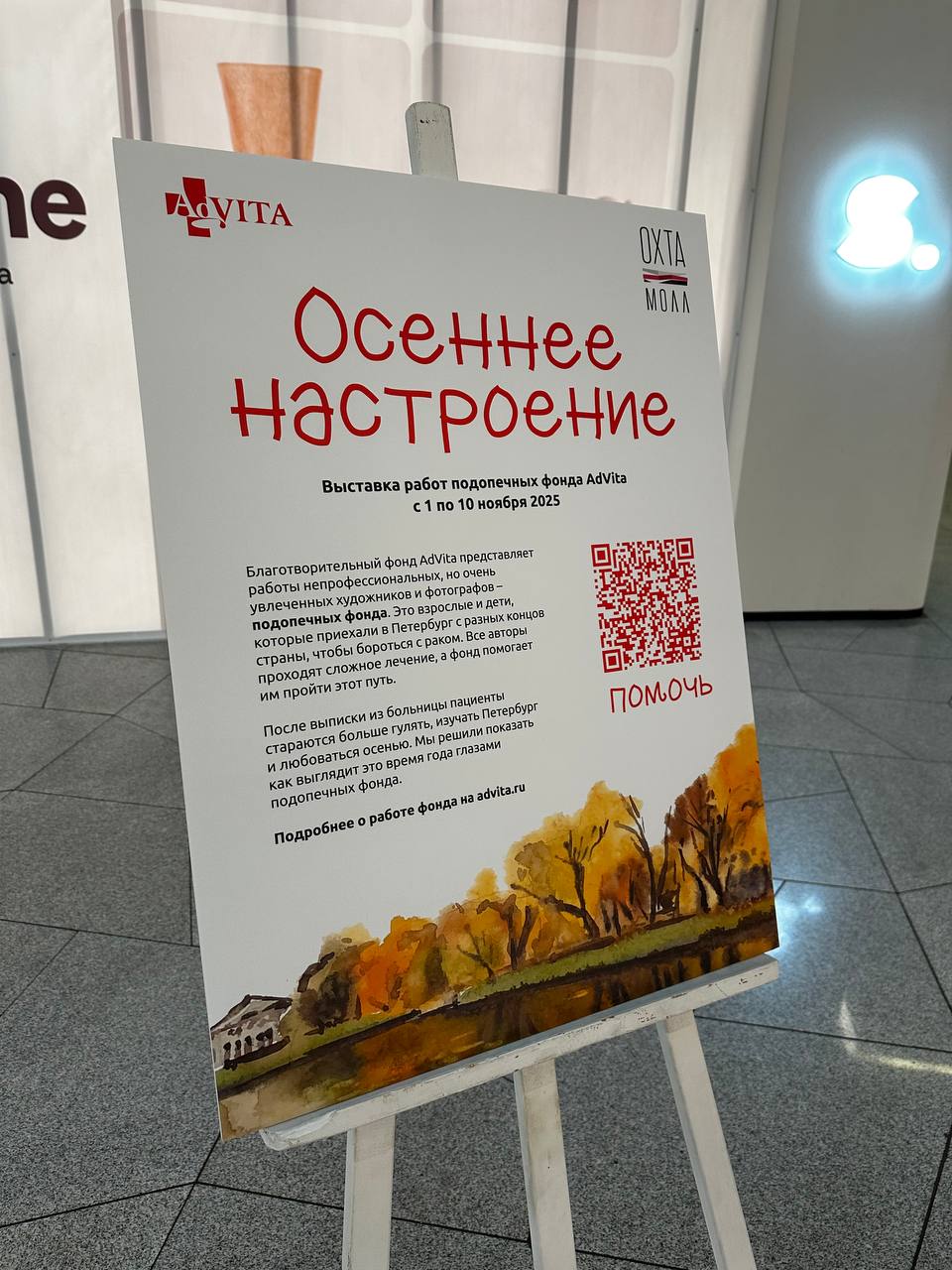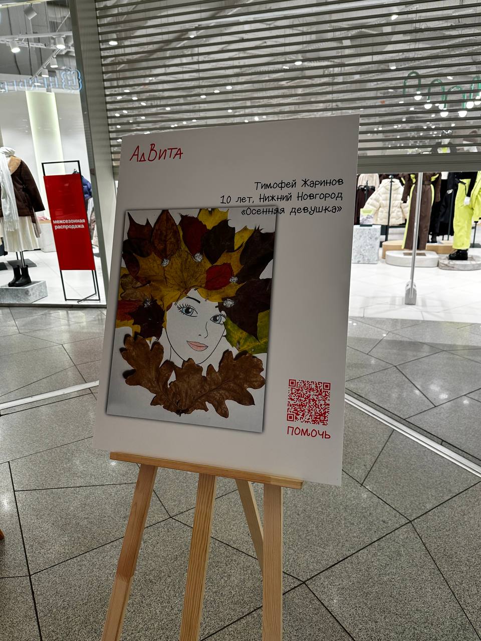 Тимофею 10 лет и он вместе с мамой сделал портрет «осенней девушки», заменив кудри на листья дуба и клена, а яркие заколочки он скатал из фольги. С этого образа и началась наша выставка «Осеннее настроение» в «Охта Молл». Мы собрали рисунки и фотографии подопечных из разных городов, чтобы передать их взгляд на это время года. Вышло так ярко, что если взять палитру нашей выставки, получились бы оранжевые, красные, золотые, зеленые, алые и желтые цвета.